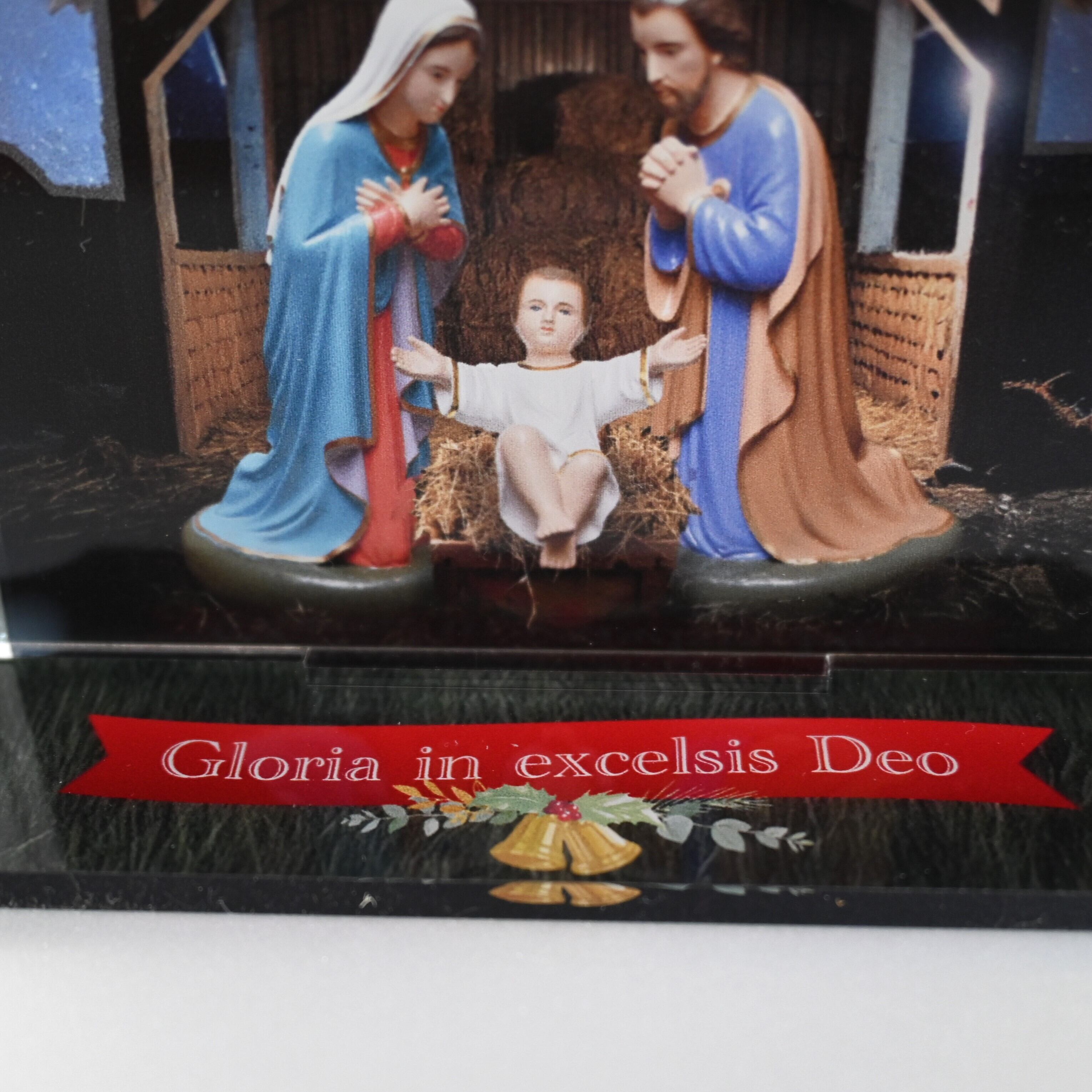 土台部分のアクリルには、「Gloria in excelsis Deo」(天のいと高きところには神に栄光あれ)の文字が鈴とともにプリントされています。