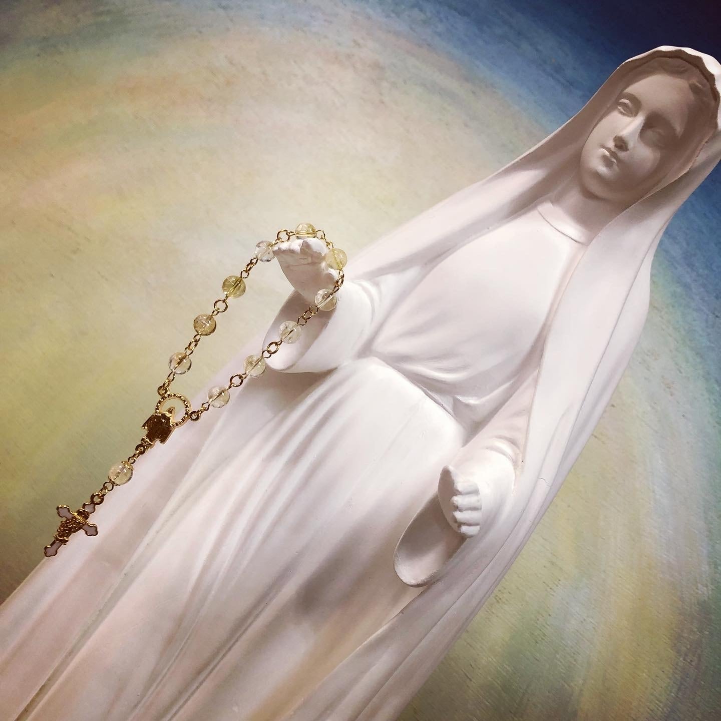 天然石『シトリン』を使用したミニロザリオです。