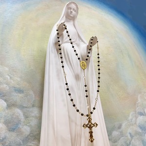 「アヴェマリアの祈り」部分に使用しております『パイライト』は、黒とゴールドが混ざり合った色合いで、金属的な光沢があり重厚感のある美しいビーズです。